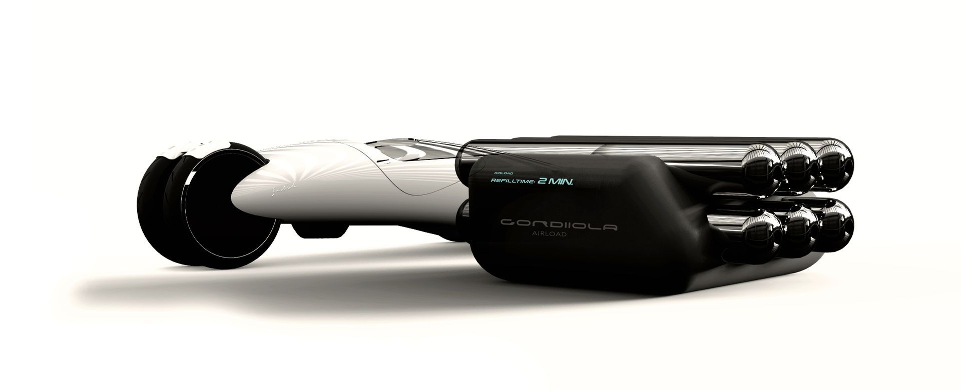 THE GORDIIOLA MOTOR is positioned directly between the two rear wheels. As the torque required by the GORDIIOLA MOTOR is available from the first revolution, the GORDIIOLA has no gearbox. This saves weight and components. The engine is supplied with energy in the form of pressure via compressed air tanks located in the frame of the vehicle. In an additional fuel unit (such as hydrogen), we supply the engine with further pressurised and thermal energy as required, thereby compensating for the energy losses (heat/cold) of both systems.